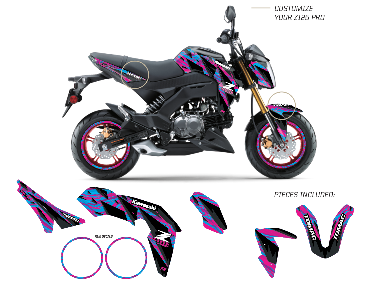 Destroy Neon Kawasaki Z125 Pro Graphic Kit *Rim Decals included